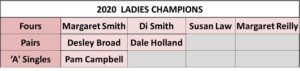 The Samford Ladies have completed their Champions of Championship Competitions and are now ready to compete in the Brisbane District Bowls Association Championship Competitions. See below our 2021 champions.